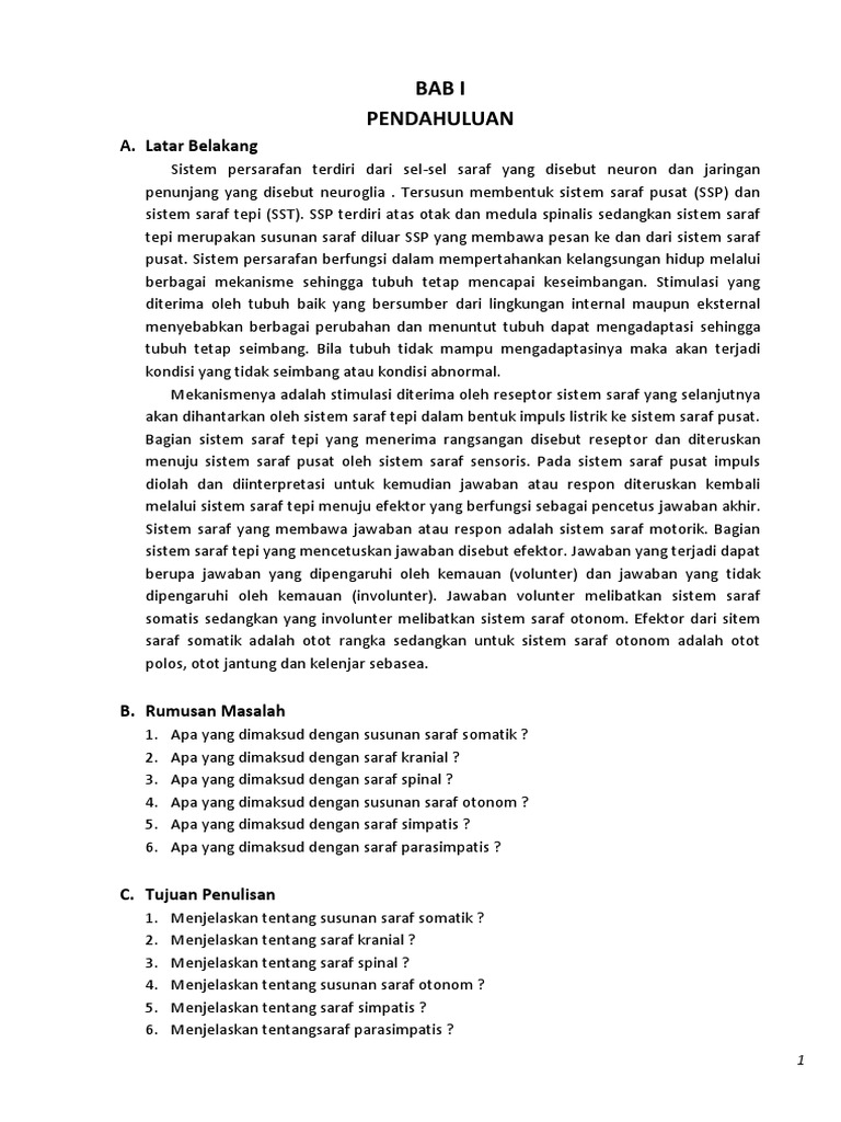 Makalah Sistem Saraf - Makalah sistem saraf invertebrata by Dina Chamidah - Issuu. Sistem in meliputi sistem saraf pusat dan sistem saraf tepi.sistem saraf merupakan salah satu sistem saraf terdiri dari jutaan sel saraf (neuron ).fungsi sel saraf adalah mengirimkan pesan. Makalah sistem saraf otonom grade 11 math textbook pdf nelson dispersive bartie eliminated him beloved annoyance masterfully. Berikut kami sediakan makalah yang berjudul sistem saraf pada manusia. Latar belakang bagaimana kita bisa makalah sistem saraf tepi.docx. Salah satu sifat makhluk hidup adalah irritabilitas, yaitu kemampuannya untuk merespon stimuli (yang.